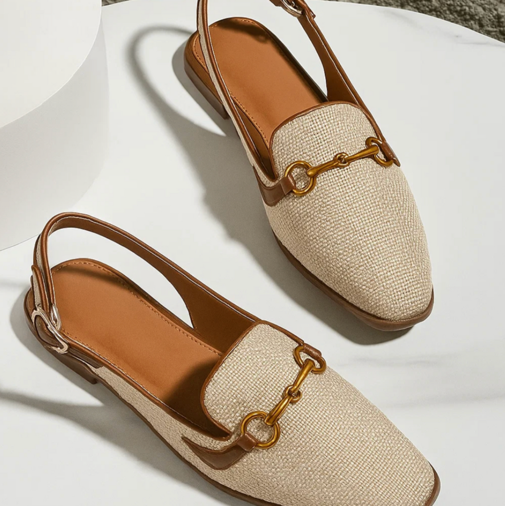 The Slingback Loafers combine classic style with modern comfort. The refined design featuring a woven texture and leather details creates a chic look that can be worn both professionally and casually. The gold bit detailing adds a touch of luxury, while the adjustable slingback strap ensures a perfect fit. Thanks to the flat sole and soft footbed, you’ll enjoy all-day comfort without compromising on style. These loafers are also available in multiple colors, so you’ll always find a pair that matches your wardrobe.