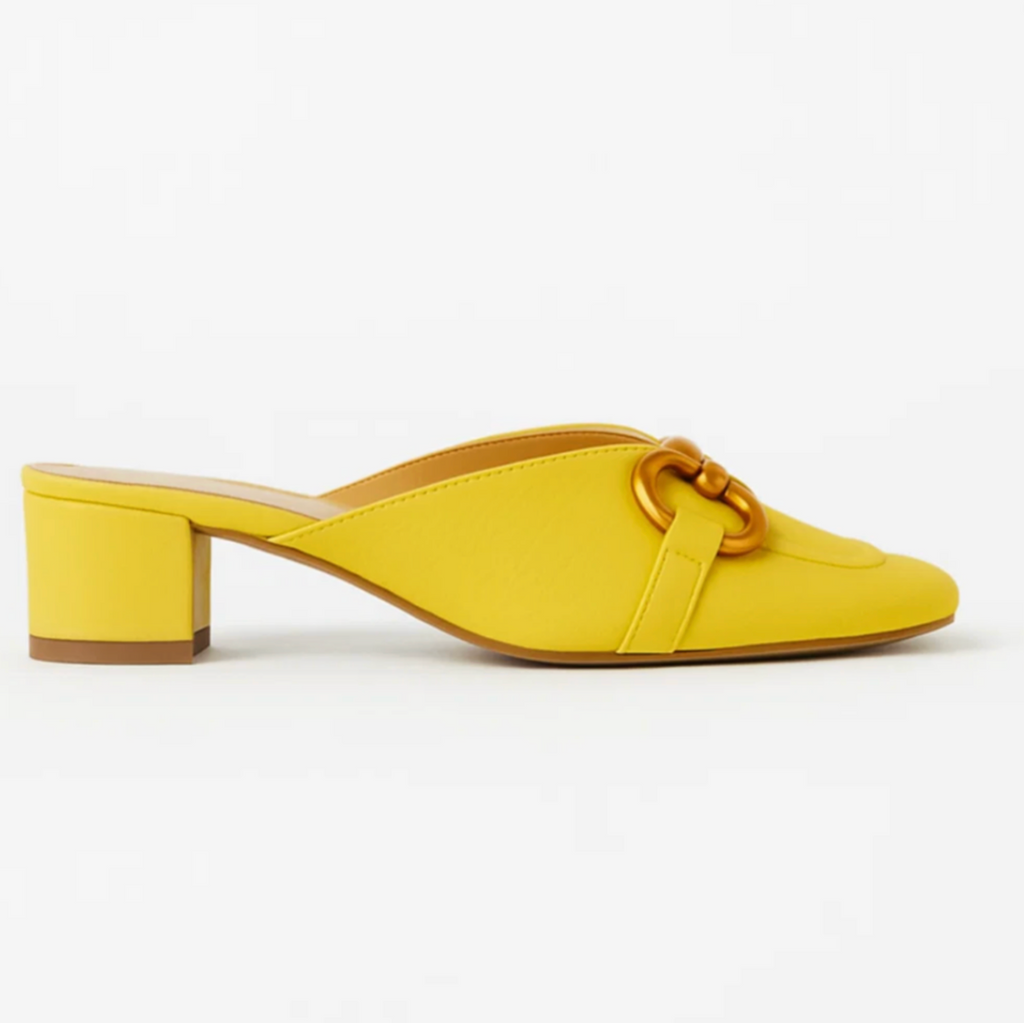 Design: slip-on sandal with modern square toe